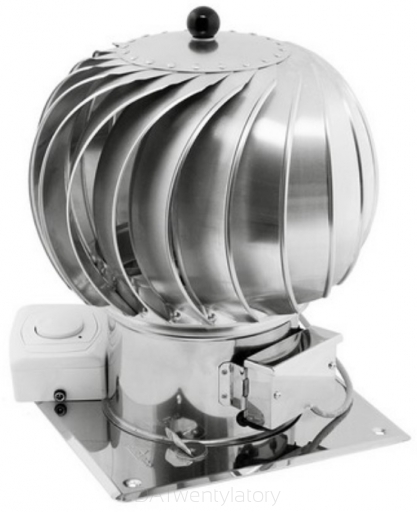 Obrotowa nasada kominowa TURBOWENT HYBRYDOWY jest urządzeniem dynamicznie wykorzystującym siłę wiatru do wspomagania ciągu kominowego, dodatkowo wyposażonym w silnik bezszczotkowy małej mocy do jego skutecznej stabilizacji. Montuje się ją na wylotach kominów wentylacyjnych o działaniu grawitacyjnym. Niezależnie od kierunku, siły i rodzaju wiatru, turbina nasady obraca się zawsze w jedną i tę samą stronę wytwarzając podciśnienie w króćcu dolotowym nasady, co w efekcie powoduje to wzrost natężenia przepływu powietrza w przewodach. Jeśli wiejący wiatr nie jest na tyle silny by uzyskać prędkość obrotową ustawioną na sterowniku, silnik elektryczny dopędza nasadę do zadanej prędkości, jeśli jest zbyt mocny, silnik ogranicza prędkość obrotową. W sytuacji, gdy wiejący wiatr jest wystarczający dla zapewnienia właściwej prędkości obrotowej TURBOWENT HYBRYDOWY działa jak zwykła nasada wiatrowa, a pobór energii elektrycznej jest minimalny. W komplecie regulator obrotów silnika, manualny.